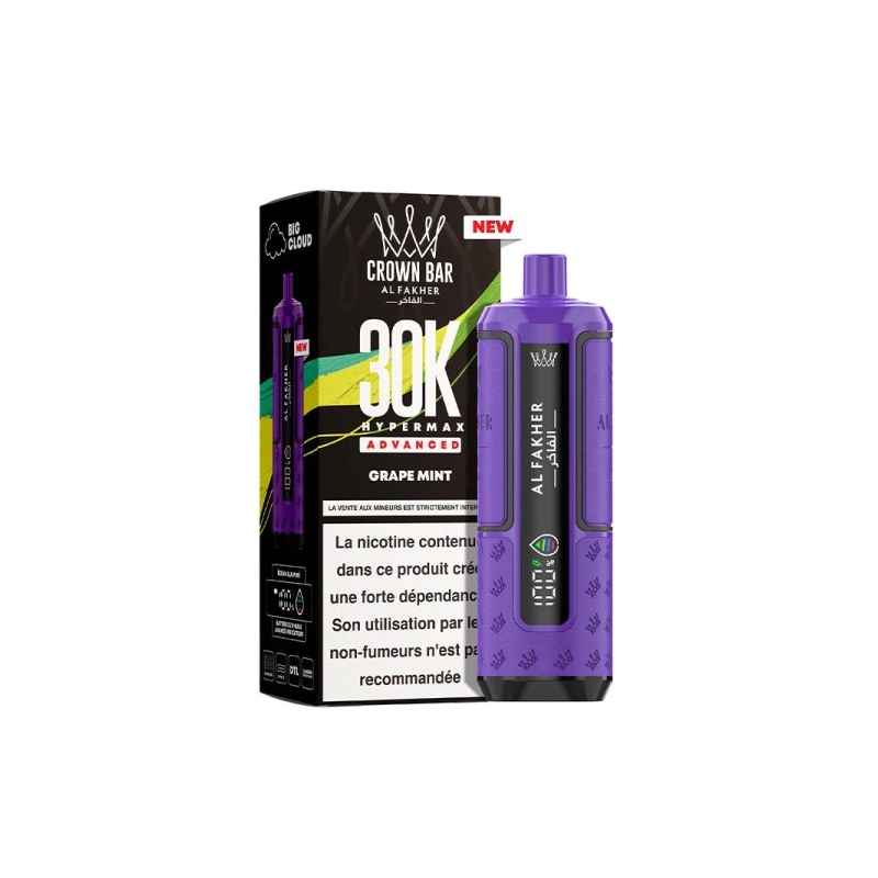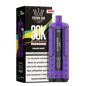 La Hyper Max Advanced 30k 9 Grape Ice Crown Bar by Al Fakher s’inscrit dans la continuité du savoir faire de la marque, historiquement reconnue dans l’univers de la chicha premium. Cette expertise se retrouve ici transposée dans une cigarette électronique jetable de nouvelle génération, pensée pour offrir puissance, longévité et précision aromatique.
