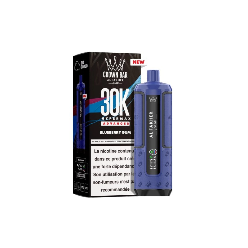 Choisir la Hyper Max Advanced 30k Blueberry Gum Crown Bar by Al Fakher, c’est opter pour une puff haut de gamme qui privilégie la durée, la qualité de vape et la richesse des saveurs. Elle répond aux attentes des vapoteurs à la recherche d’un produit fiable, gourmand et performant, capable d’accompagner une consommation régulière sans compromis.