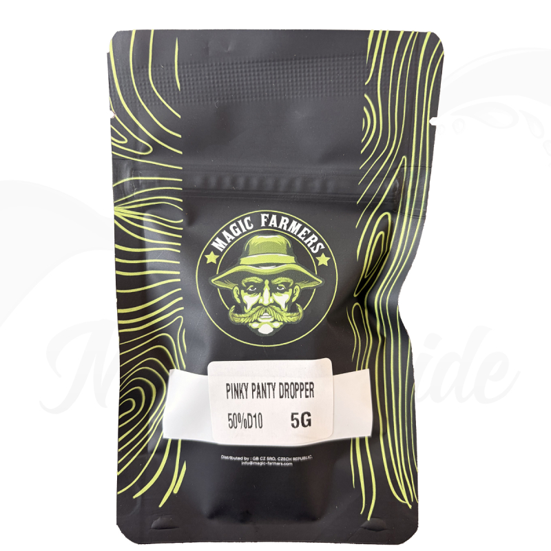 La Fleur CBD Pinky Panty Dropper 50% D10 5g de Magic Farmers est une référence premium destinée aux amateurs de sensations intenses et de qualité supérieure. Cette fleur de CBD se distingue par son taux exceptionnel, enrichi en Delta 10, offrant une expérience unique, à la fois relaxante et légèrement stimulante. Cultivée avec soin par la marque Magic Farmers, reconnue pour ses produits haut de gamme, la Pinky Panty Dropper séduit par son aspect dense, ses têtes résineuses et son parfum riche.