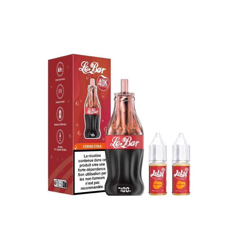 La saveur Cerise Cola est au cœur de l’expérience. Elle associe la douceur pétillante du cola à une cerise légèrement sucrée, créant un équilibre aromatique agréable et facile à vapoter sur la durée. Ce profil gustatif est pensé pour éviter l’écœurement, même lors d’une utilisation intensive. Le Starter Kit 40K Cerise Cola LeBar restitue les arômes avec précision, grâce à un système de chauffe optimisé et des cartouches conçues pour préserver la qualité du e liquide.