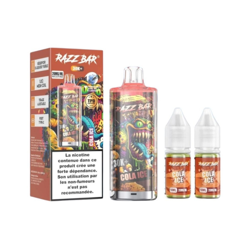 Avec son mélange unique de cola et de fraîcheur, son autonomie élevée et sa facilité d’utilisation, la Razz Bar 30K Cola Ice s’impose comme un choix évident pour une vape quotidienne de qualité.