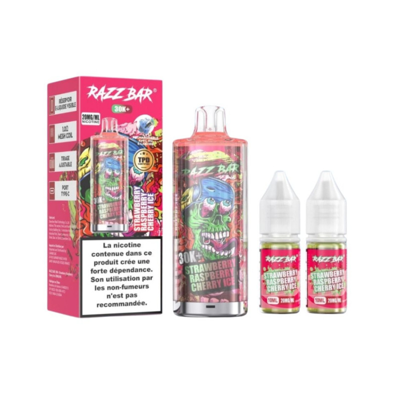 La Puff Razz Bar 30K Strawberry Raspberry Cherry Ice est une cigarette électronique jetable nouvelle génération pensée pour répondre aux attentes des vapoteurs les plus exigeants. Avec sa capacité impressionnante allant jusqu’à 30000 puffs, elle redéfinit les standards de la puff rechargeable en offrant une autonomie prolongée et une expérience de vape constante sur la durée.
