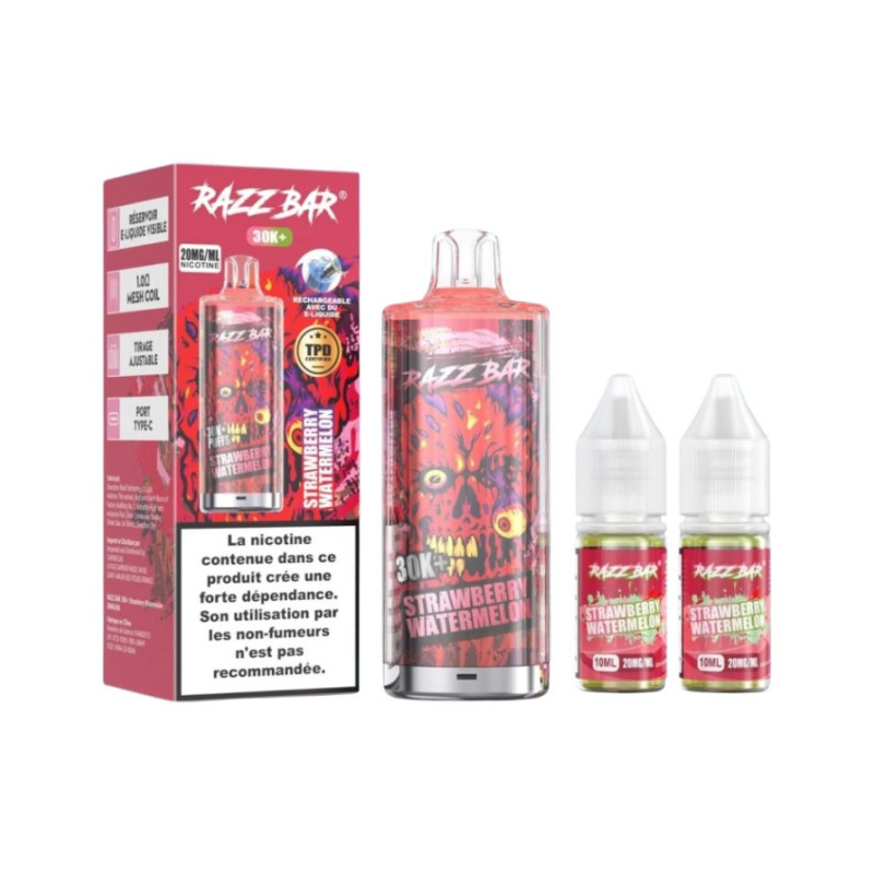 Avec la Puff Razz Bar 30K Strawberry Watermelon, profitez d’une vape généreuse, pratique et savoureuse, qui s’adapte parfaitement à votre rythme.