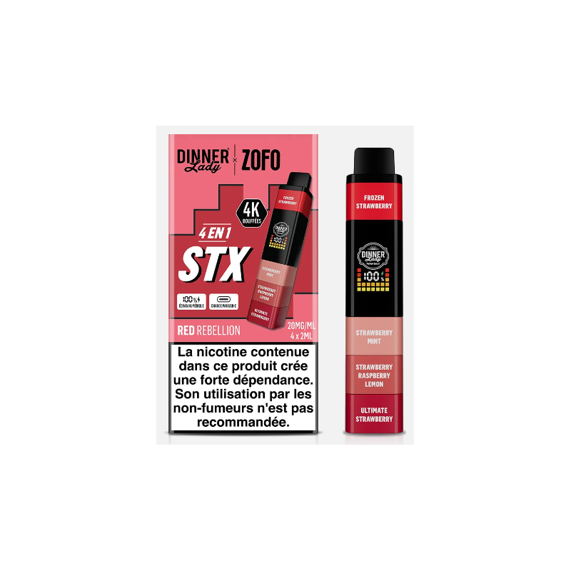 Le Kit 4 en 1 Rebellion Dinner Lady représente une avancée majeure dans l’univers de la cigarette électronique. Fidèle à la réputation de Dinner Lady, ce dispositif a été conçu pour répondre aux besoins des vapoteurs exigeants, en combinant innovation technologique, simplicité d’utilisation et qualité de vape irréprochable.