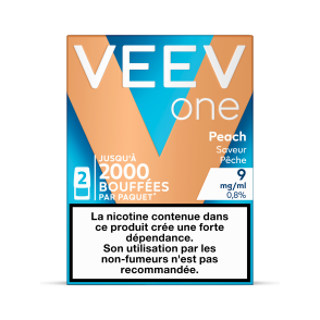 Une capsule Veev One saveur pêche 1.8% contient 2 ml d’e-liquide. Selon le fabricant, cette quantité permet de profiter jusqu’à 1 000 puffs. En d’autres termes, vous avez à votre disposition 2 000 bouffées grâce à l’achat de ce lot de deux capsules de recharge.