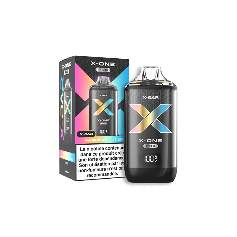 Le X-One Pro Rainbow Ice X-Bar 10 mg/ml est une création audacieuse de la marque X-Bar, connue pour ses saveurs expressives et son approche moderne de la vape nomade. Cette version Rainbow Ice s’adresse aux amateurs de sensations fruitées intenses, avec une touche givrée parfaitement maîtrisée. Dès la première bouffée, on découvre un mélange arc-en-ciel très équilibré qui évoque un assortiment de fruits multicolores, doux, acidulés et dynamisants à la fois. Le tout est sublimé par une fraîcheur glaciale qui vient structurer la saveur sans jamais l’écraser.